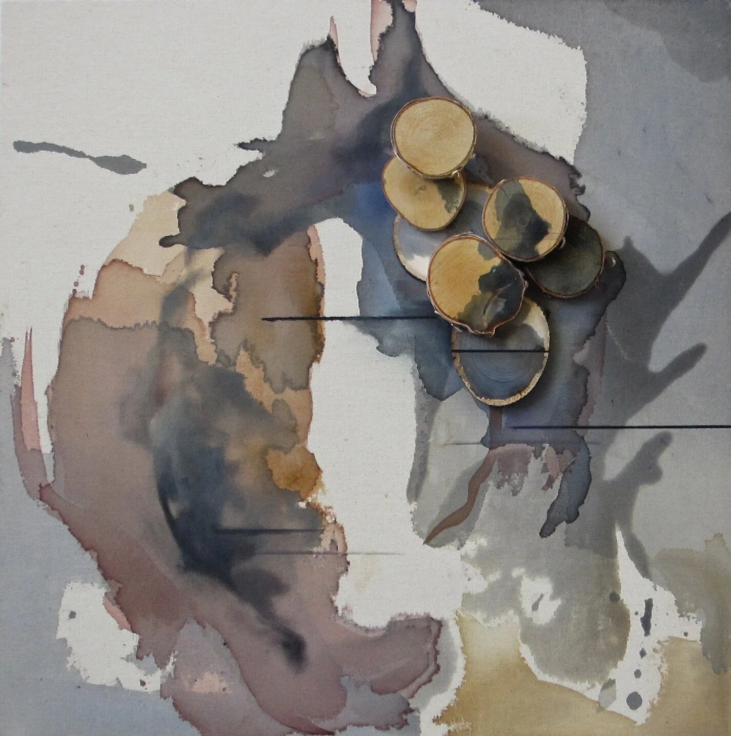 Within my research of the term ‘pinkwash’, it led me to common terminology of the AIDS epidemic, where GRID was the initial name for the immune deficiency. Working in a squared geometric form, the abstraction centers on a cellular-like form of suspended copper flakes. The work interplays in what is man-made to what is a natural occurrence.