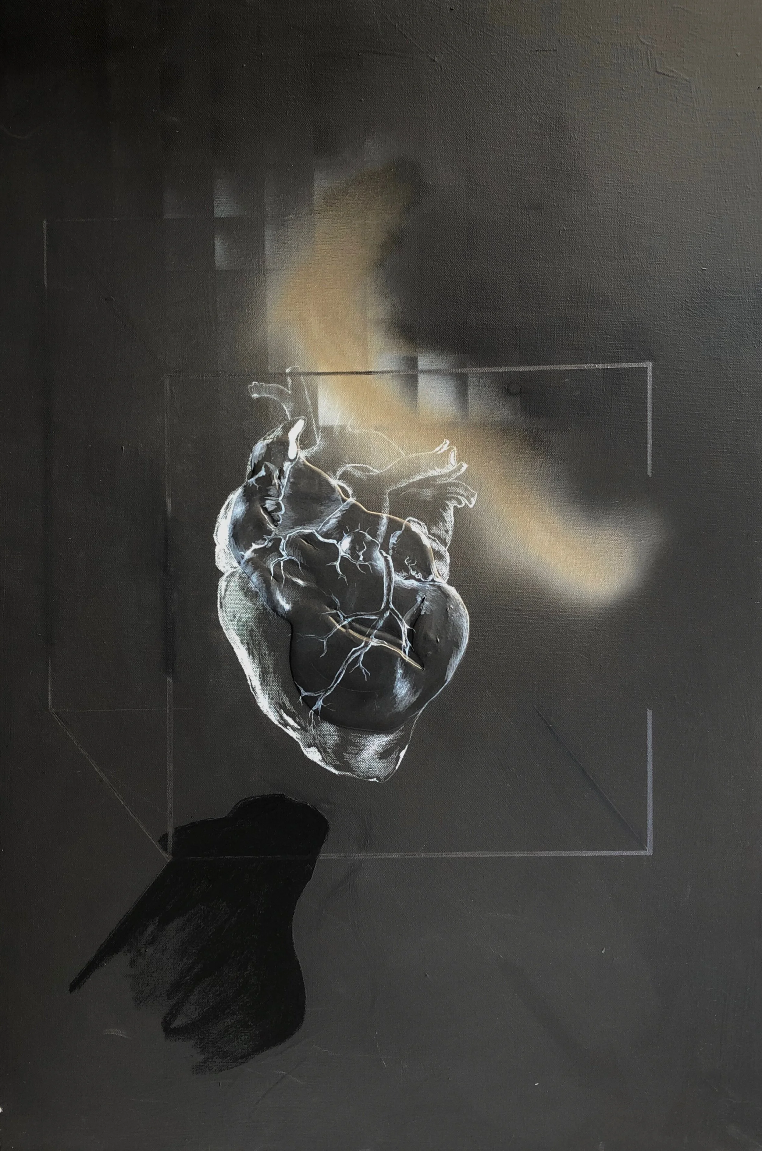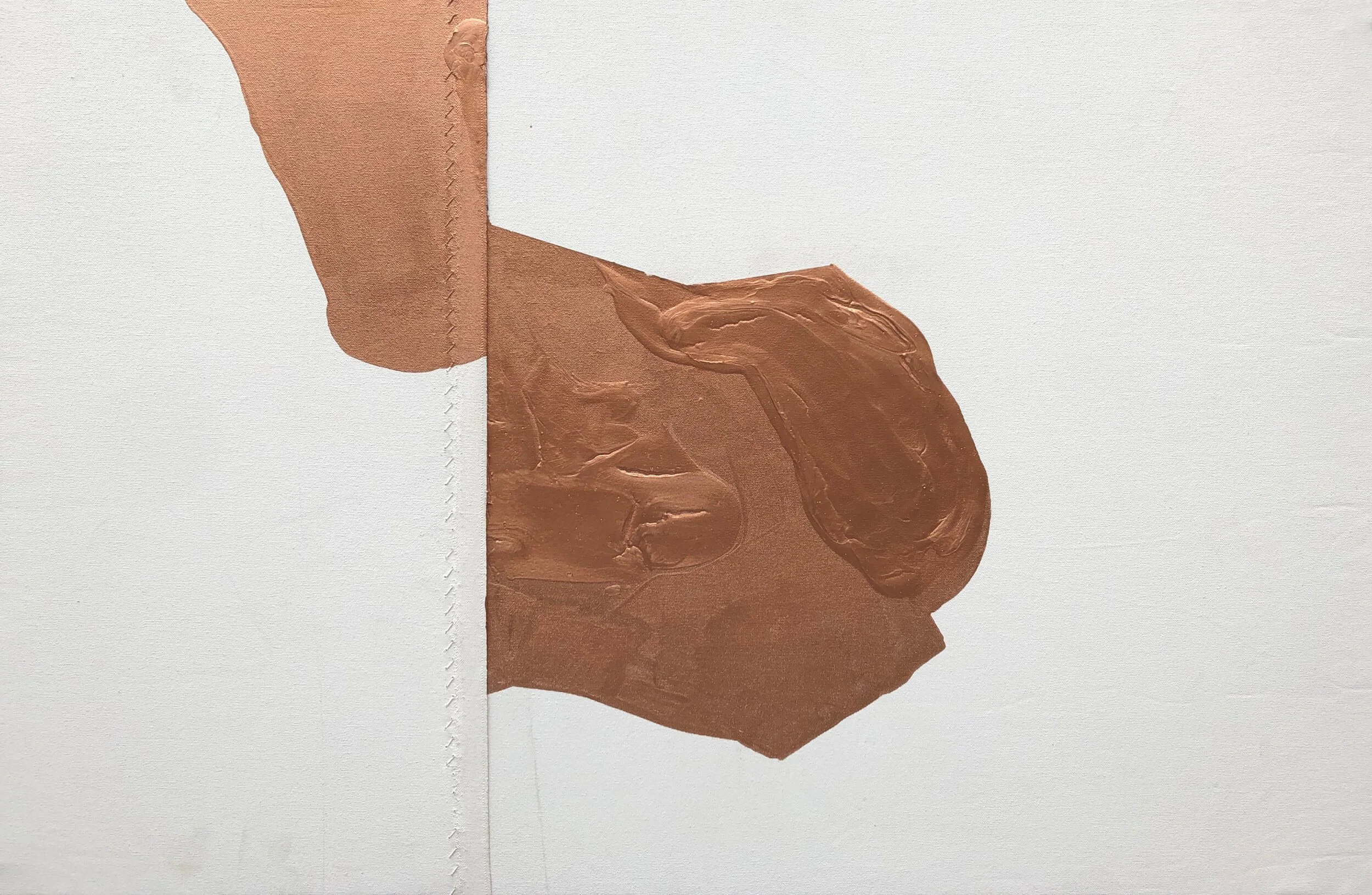 The painting, Thou Shall Not, gages a critical look into balancing the true nature of one's dogma with an established belief system. In my first solo exhibition, 1.48.116, I explored a physical embodiment of the divide surrounding LGBTQ matters, specifically with relational and religious concerns. This work also holds the first exploration in seaming my canvases, interrupting the viewer’s gaze and embroidering my canvases with copper wire. In recent affairs, the painting just was shown and sold in the exhibition, the ‘Inside Job’, through Christie’s auction house.