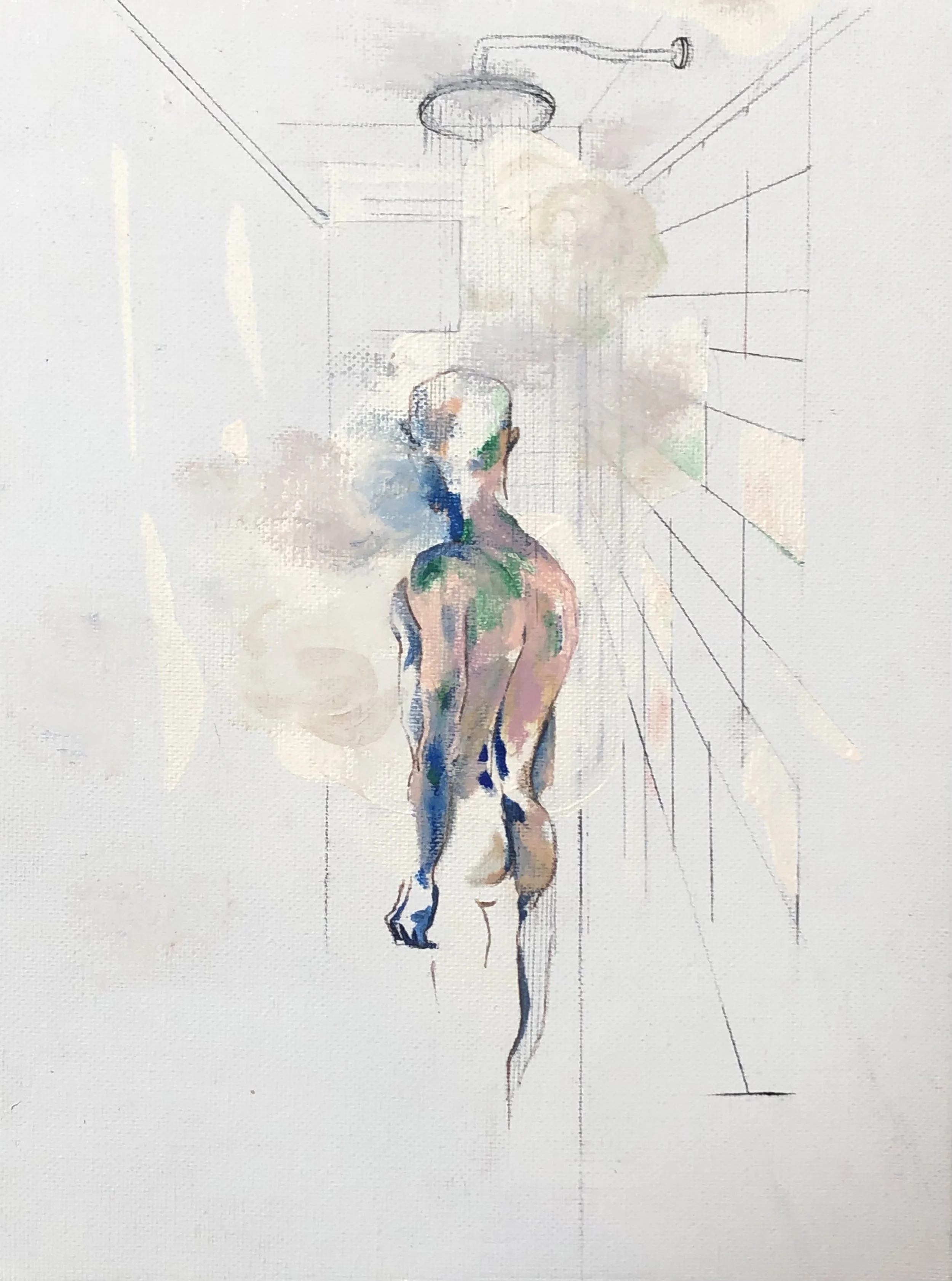 Thinking about contradictions amongst my religious communities, the hierarchy of sin- or lack thereof, New York slang, subjectively sexual content, physical attraction on a carnal level, white lies from silver slick tongues, the glint of gossip, and the cascading of events which took place over a couple of years both in Tucson and New York, with great pauses until the next mark felt smart and logical. With long overdue fruition this work articulates the praxis of my work, taboo identification as a queer religious man.